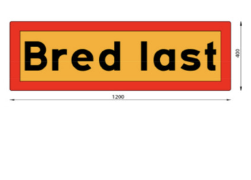 Tydlig bredlastskylt för montering fram på lastbil.