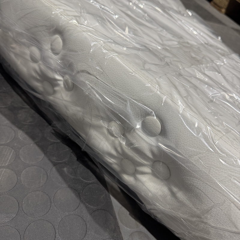Bord i premium modell med dubbelsydda stygn och skinn i vit färg med knapp