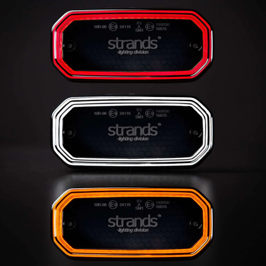 Målet med denna lampan var att skapa en utanpåliggande lampa som är både snygg, enkel att montera och bygger bara 9 mm. Eftersom lampan bara är 84 mm lång är det dessutom möjligt att skapa mönster med flera lampor. Samtliga varianter är dessutom E-märkta för respektive position (kategori A, R1 och SM1) och därmed 100% lagliga. Kabeln på 2,5 meter gör att de dessutom är enkla att montera var du än vill. Dessutom är de gjorda i slagtålig polykarbonat, så du behöver inte oroa dig för att de sitter utsatt – det klarar lamporna av!